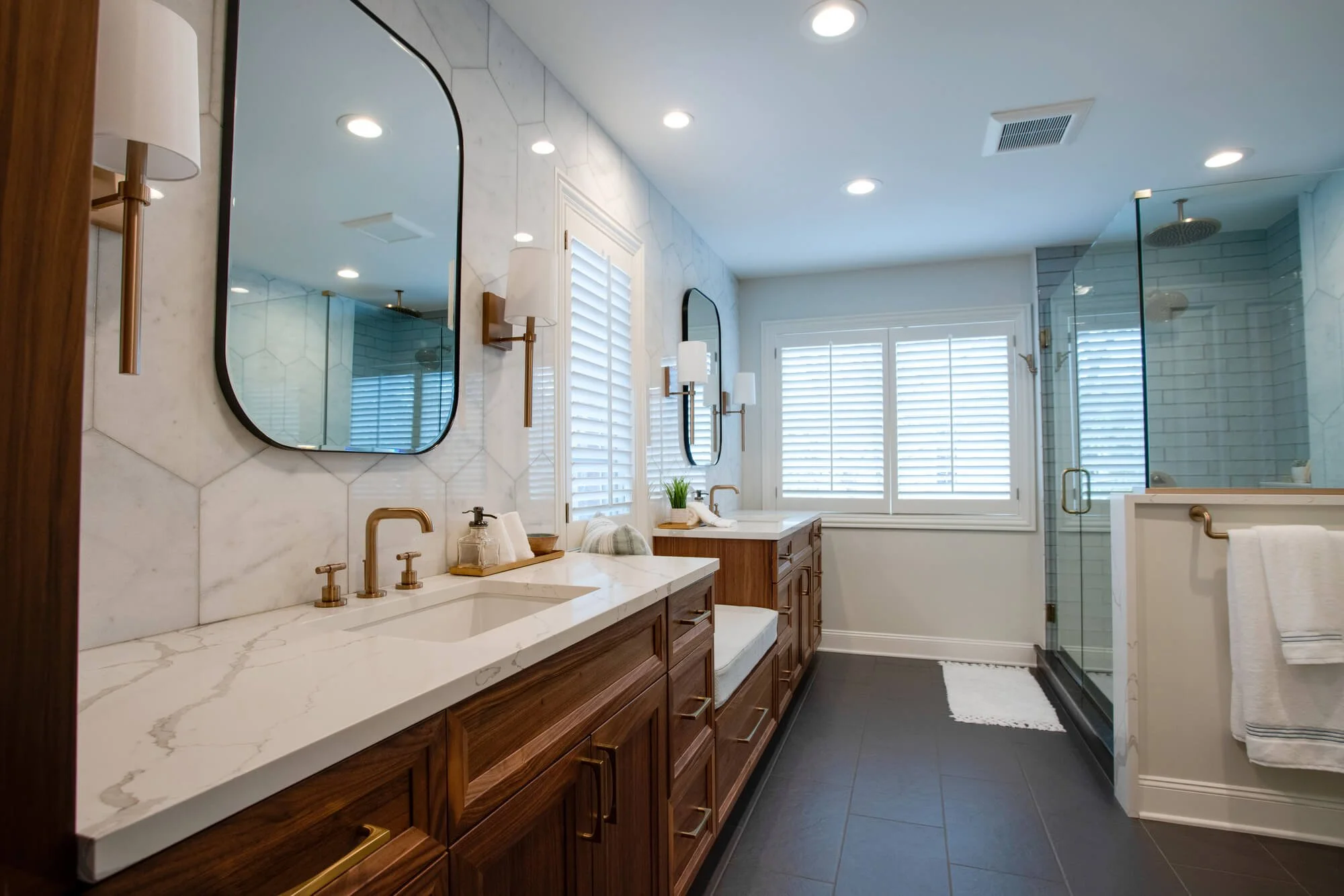 High-end finishes and a mix of metals in fixtures, hardware, and tile make a statement in every room.